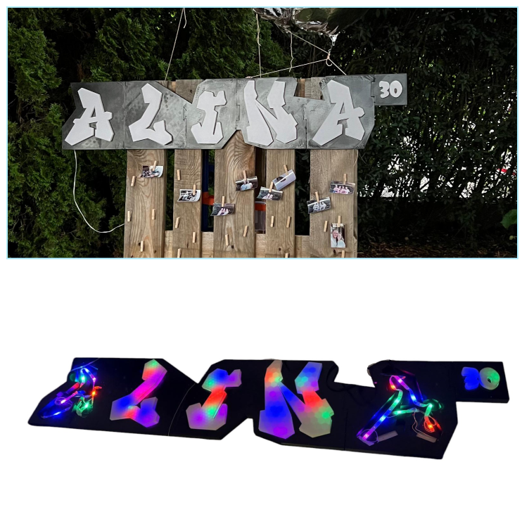 Ein individuelles "Neonschild" mit LED als Fotowand für deine Party - nicht.